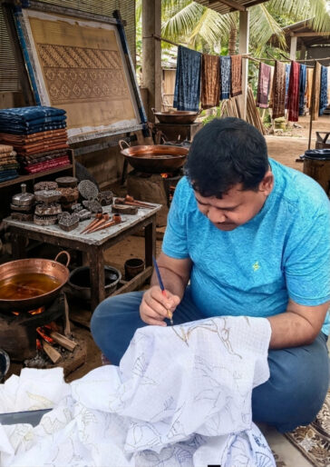 Suri Karuangan is not just a brand, it is my story. Abhisek Sengupta is a batik artist and founder of Suri Karuangan, specializing in natural dye batik textiles, Indo-western designs, and traditional Santiniketan-style creations. His work blends heritage craftsmanship with eco-friendly practices.